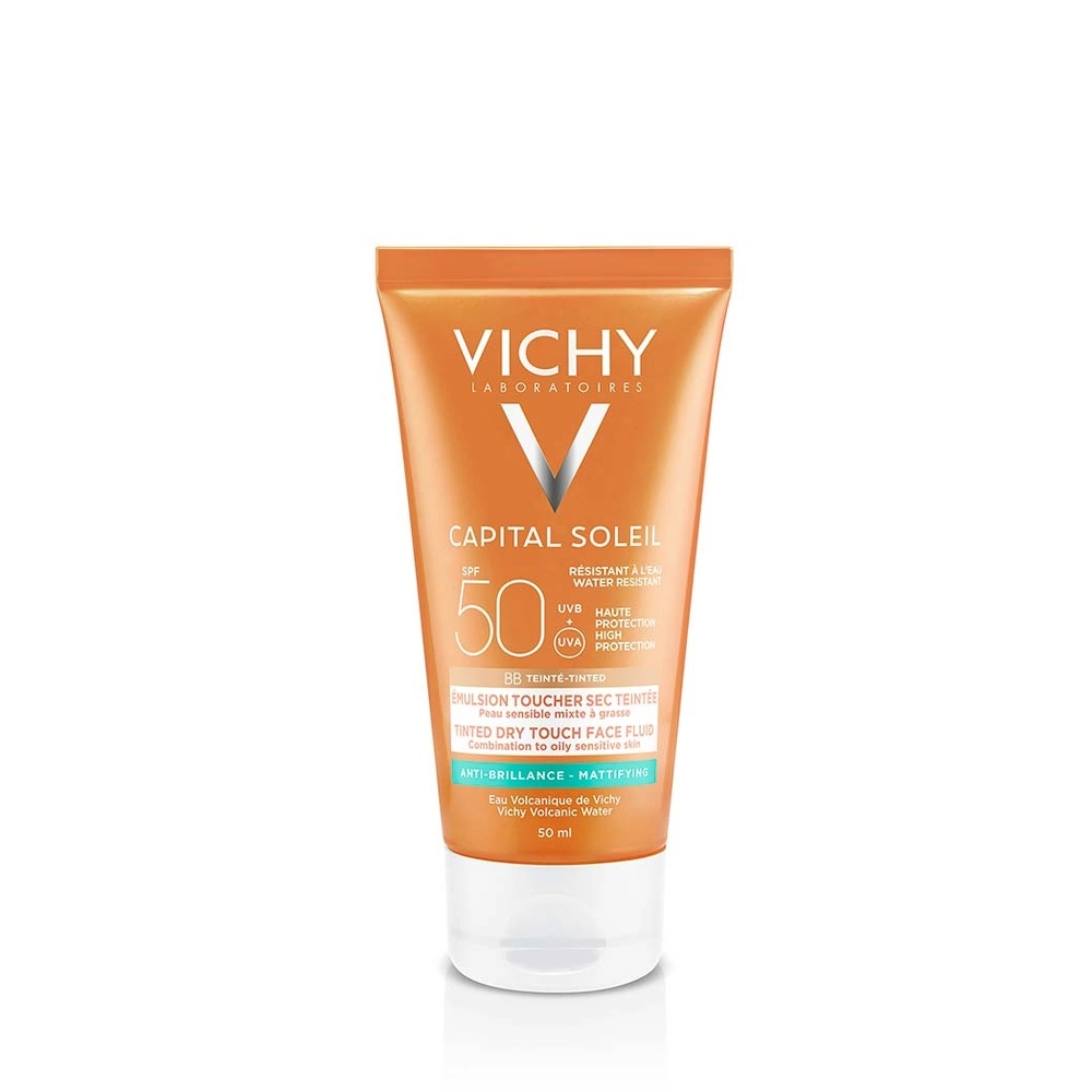 Vichy Écran Toucher Sec Teinté SPF50+ – Pour Visage (Protection solaire, Hydratant & nourrissant, Éclat & anti‑fatigue)